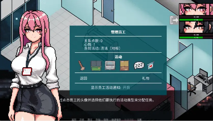【这是一款模拟游戏,你需要在父亲去世后管理一家继承的商店。除了商店,你还继承了他欠一个黑帮成员的债务。唯一的出路是升级商店并还清贷款。幸运的是,你有很棒的员工来帮助你!这会带来什么?在《顽皮商店经理》中找到答案吧!游戏介绍:琳是持有经理债务的黑帮成员的女儿。在她父亲的要求下——这无法拒绝——她开始在商店工作。她来自一个特权背景,一切都被给予她,她成为了经理负责监督的对象。直央是商店里最有经验的员工。她已婚,丈夫每天接送她上下班。虽然她曾经很外向,但婚后生活变得单调。尽管如此,她对他人仍保持着善良和积极的态度。由于与丈夫超过十年没有亲密关系,她在性方面仍未得到满足。14个H动画把货架填满,保持仓库整洁,处理垃圾,不要跳过清洁——顾客们正在结账处排队!穿上超市经理的鞋子,体验一个充满曲折的故事。照顾你的团队,保持他们的士气高涨,建立关系,挖掘他们的内心!