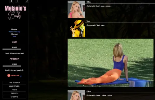 概述 你是新来的。你撞到了你朋友瑞安的家。突然,一个名叫梅兰妮的女孩按响了你的门铃,从那时起,你的生活就围绕着她展开了。 声明:本站所有文章,如无特殊说明或标注,均为本站原创发布。任何个人或组织,在未征得本站同意时,禁止复制、盗用、采集、发布本站内容到任何网站、书籍等各类媒体平台。如若本站内容侵犯了原著者的合法权益,可联系我们进行处理。
