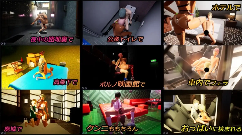 ■难度随时可以调节简单难度就像拔作一样简单。真实难度就非常困难,在光天化日之下自慰之类的会马上把所有人吓跑!脱下衣服,摆出一个性感的姿势,让周围的男孩子兴奋起来吧!然后看准时机「勾搭」!当显示OK的时候就可以进入色情部分了!从自慰到尿尿,即便只用露出部分就已经够撸个痛快了!尽情欣赏这个在男孩子们众目睽睽之下自慰的只属于你的伙伴吧!让被勾搭的男孩子跟你的伙伴做色色的事情吧!我们准备了92种基本色情动画,算上其中的差分和自定义服装的话,可以说有无限种可能性!!从「手淫」到「抱起位」,你可以在「性奋公园」体验各种各样的场景!还可以去勾搭的孩子的家里做爱!