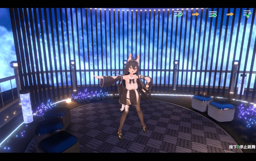 你好,这是我们新开发的游戏《虚拟女孩计划》。游戏包含了许多从 Booth 商店购买的 VRchat 角色和场景资产,但互动内容与 VRchat 完全不同。所有互动玩法均由我们添加。