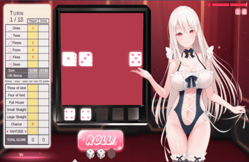 让我们用 Yahtzee 游戏把她脱光吧! 测试你的技能并碰运气 也许我会有机会触碰她?