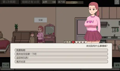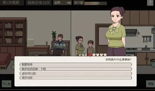假期期间,我的父母外出,我独自住在公寓里。公寓一楼有一家超市,一名外来务工人员担任收银员。有一位喜欢粉红色的社交名媛和一位住在二楼的单身母亲。三楼住着一对中年夫妇。男方经常喝酒,喜欢去周酒楼和酒馆喝酒消费,经常不回家。三楼还有一位白领小姐姐,喜欢穿宽松的睡衣。你们通常彼此认识,但接触不多。这次你一个人在家的时候能不能和他们建立新的关系,完全取决于你怎么作!