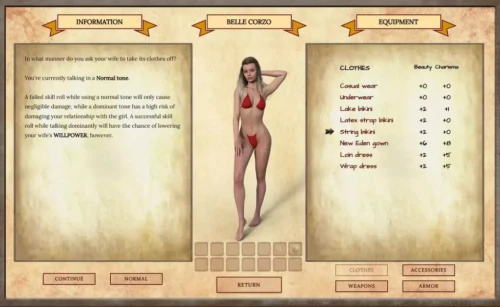 • 如果NPC裸体,+2美貌/+2魅力。