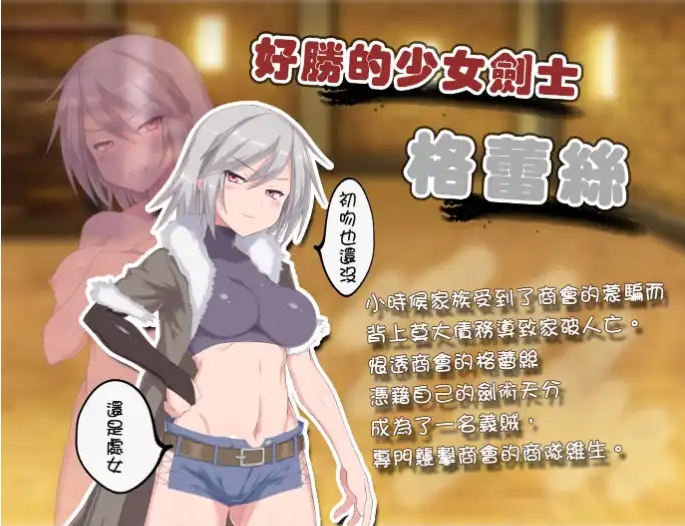 迷宫林立的城市隆德伯格。与控制这座城市的商会对立的格蕾丝,背负了巨额债务,并被迫签下契约——如果无法偿还债务,她将终身作为性奴隶屈服于他人。格蕾丝能否在保护自己的子宫和尊严不被玷污的情况下达成目标呢……?游戏内容:义贼少女意外陷入危机,强制签下耻辱契约 身为没落贵族之后,即使无奈沦为盗贼,「格蕾丝」仍保有骑士精神,坚持只对不义的商会下手,并将大部分的钱都捐给了教会的孤儿们。 好景不常,格蕾丝在一次行动失手,被抓到会长面前,却意外发现他正是导致她家破人亡的元凶!儘管怒火中烧,格蕾丝还是被迫签下了耻辱的契约,要是无法赔偿商会的损失,就必须成为仇人的所有物……勇闯随机生成迷宫,变化无穷的 Roguelike 冒险体验! 《迷宫街的格蕾丝》是一款承袭经典 Rogeuelike 玩法的迷宫冒险成人游戏。在游戏中,玩家将化身女主角格蕾丝,进入迷宫探险以偿还巨额债务,同时提防对她的身体虎视眈眈的男人们。忍受淫魔的发情诅咒,捨弃尊严兴奋献身! 《迷宫街的格蕾丝》的主线剧情分为六大阶段,随著游戏推进,逐步解锁愈来愈大胆的 H 事件,玩家将看到女主角格蕾丝慢慢卸下心防,抛弃对贞洁的矜持,习惯这座城市的淫靡氛围。