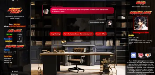 本作是《街头英雄》的衍生作品,游戏玩法聚焦于商业管理,而非回合制战斗。山口家首领的侄子山口健在掌控横滨唐人街后,得知泽田信与其表兄的不伦关系引发冲突。奉首领之命,山口健计划下一步接管久峰町。为确保成功,他选择在邻近城市有日定居,逐步整合当地地下势力“黑寡妇”以增强实力,为对抗泽田家二号人物泽田秀夫及其对手泽田信的联合力量做准备。
