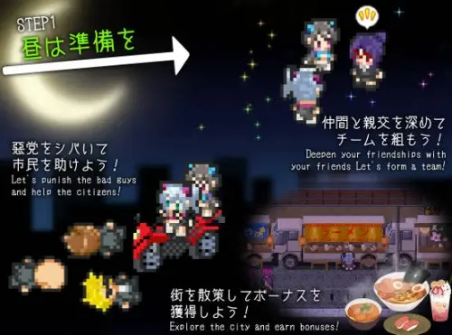 如果你增加你的好感度,你就可以组建一个队伍。 让我们一起打击游荡城市的不良少年,帮助需要帮助的居民!