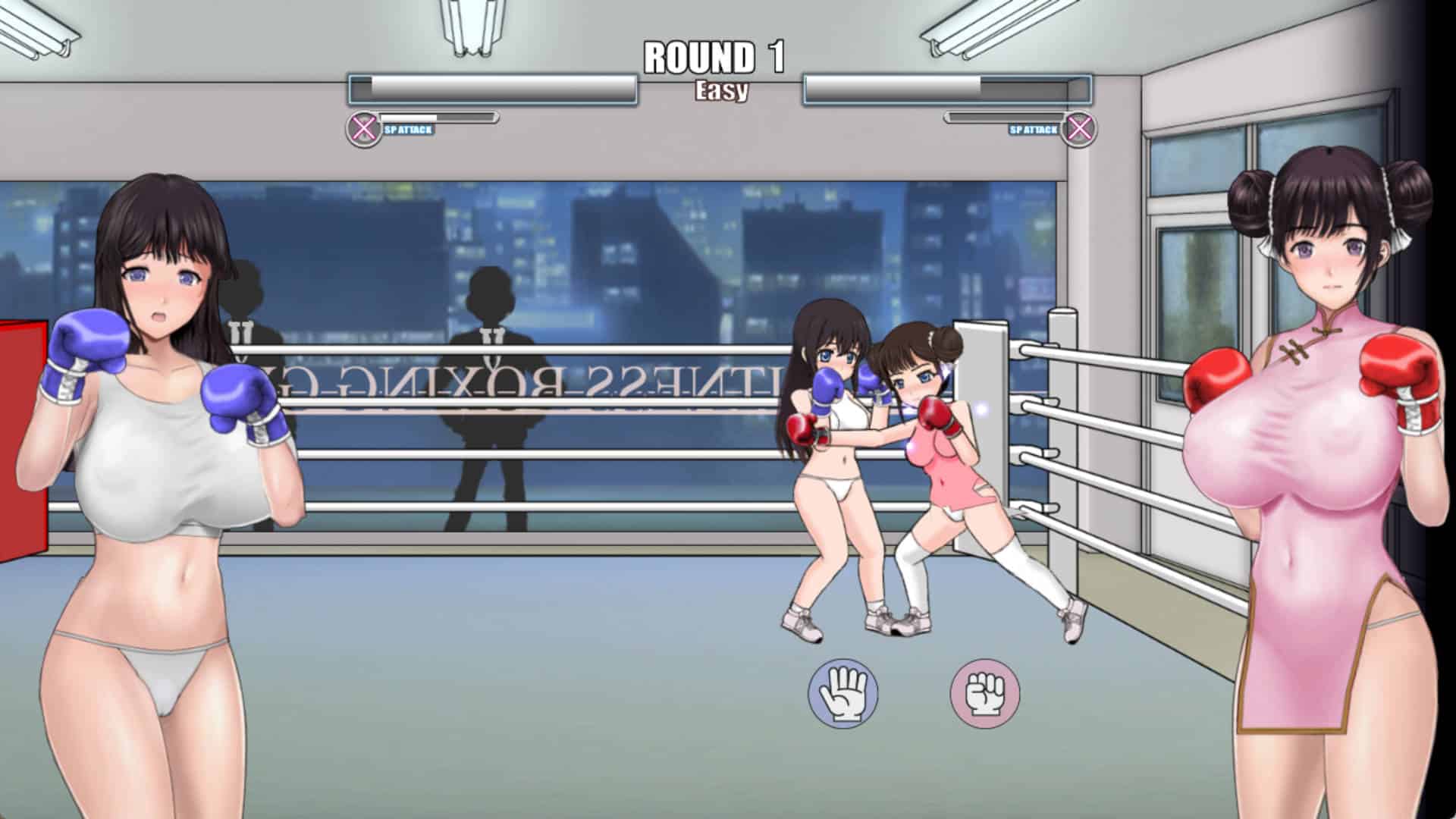 输了就有惩罚游戏的简单对战型格斗(没有跳跃、蹲下、投掷、复杂指令技)。